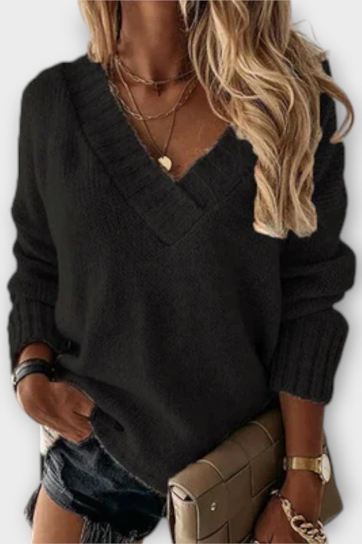 • Elegant pasform: Let løstsiddende silhuet og diskret V-hals, der flatterer modne silhuetter og muliggør lag-på-lag.